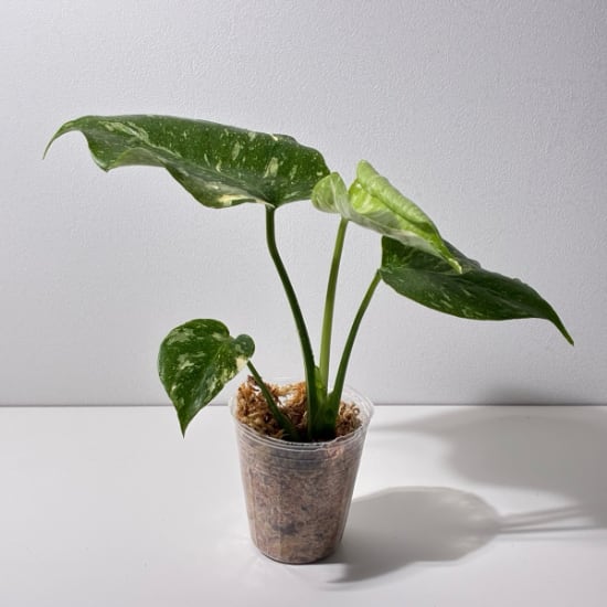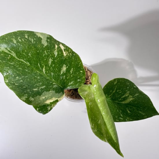 モンステラ・デリシオーサの種類で、葉に美しい白い散斑が入るのが特徴です。成長とともに葉の切れ込みも入ってきます。