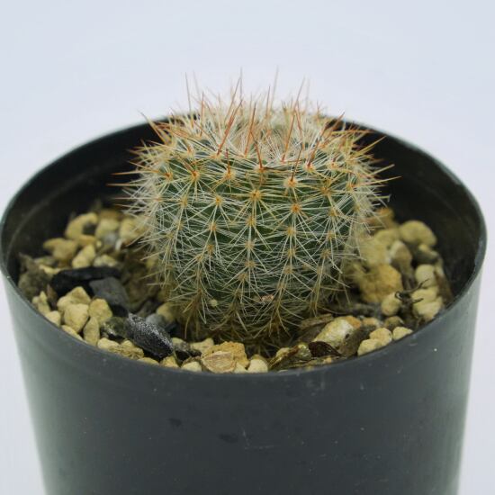 光沢のある濃緑の球体ボディに赤みがかった細いトゲが特徴です。