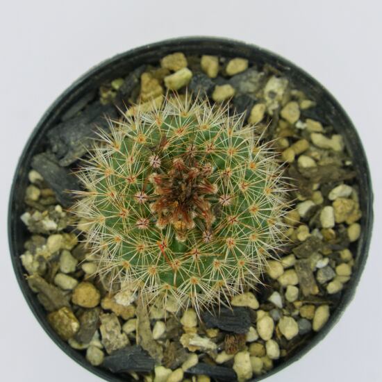 平べったい丸形で、緑色の肌に鋭いトゲが放射状に並びます。