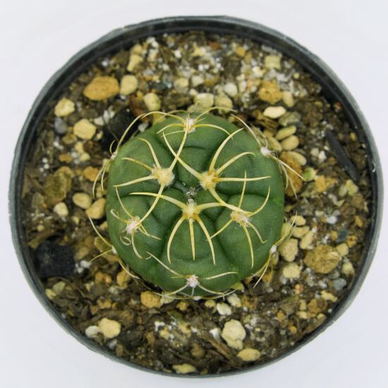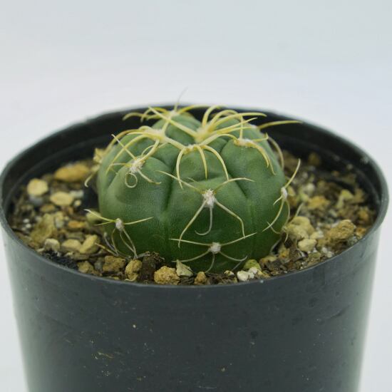 深緑色のぷっくりとした球体で、表面には光沢があり、太く短いトゲがへばりつくようにうねって生えています。