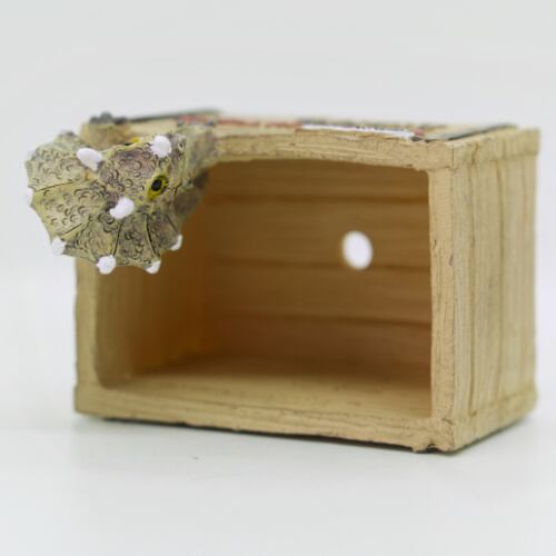 恐竜コンテナポット 木箱から覗く恐竜が愛らしい鉢です。 サイズ:W68×L52×H43(70)mm ・注意事項・ 色の見え方にはモニターによって差があります。固体差がありますので、あらかじめご了承ください。こちらの商品はアンティーク加工のため、デザインに色ムラやサビ感を出しております。それぞれの魅力としてお楽しみください。実店舗での販売も行っておりますので、在庫状況はタイミングによって異なる場合がございます。