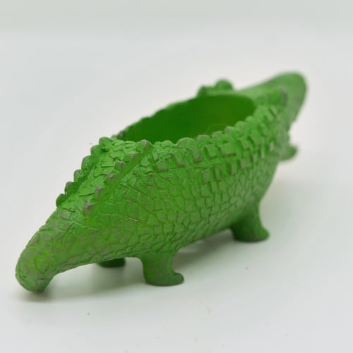 クロコディルポット ワニ型の可愛らしい鉢が、あなたのインテリアに楽しいアクセントを加えます。 サイズ:W117×L40×H38mm ・注意事項・ 色の見え方にはモニターによって差があります。固体差がありますので、あらかじめご了承ください。こちらの商品はアンティーク加工のため、デザインに色ムラやサビ感を出しております。それぞれの個性としてお楽しみください。実店舗での販売も行っておりますので、在庫状況はタイミングによって異なる場合がございます。