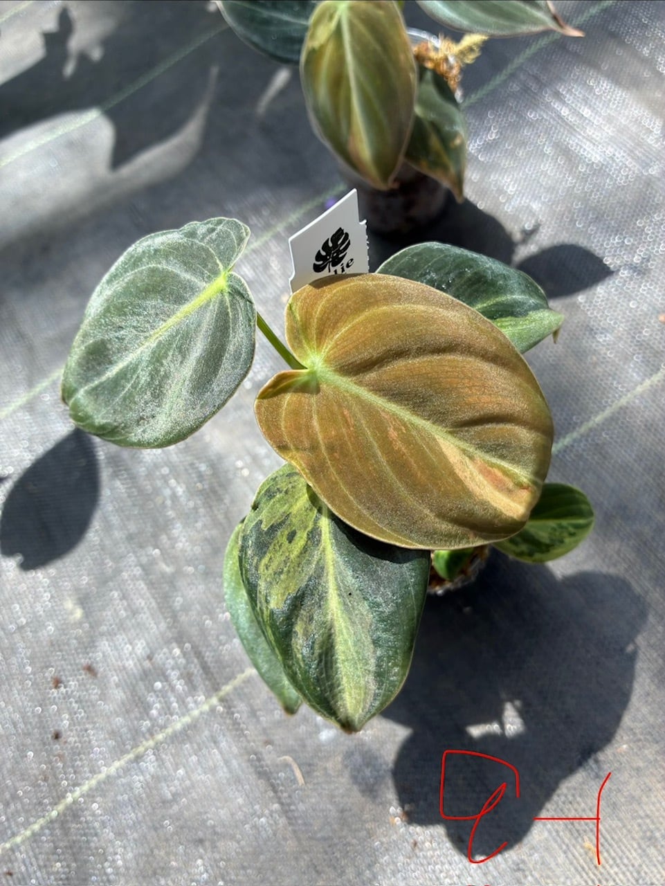 葉は深緑~黒みがかったベルベットのような質感。斑の形は不規則で変異が大きく、白~黄色で多彩です。