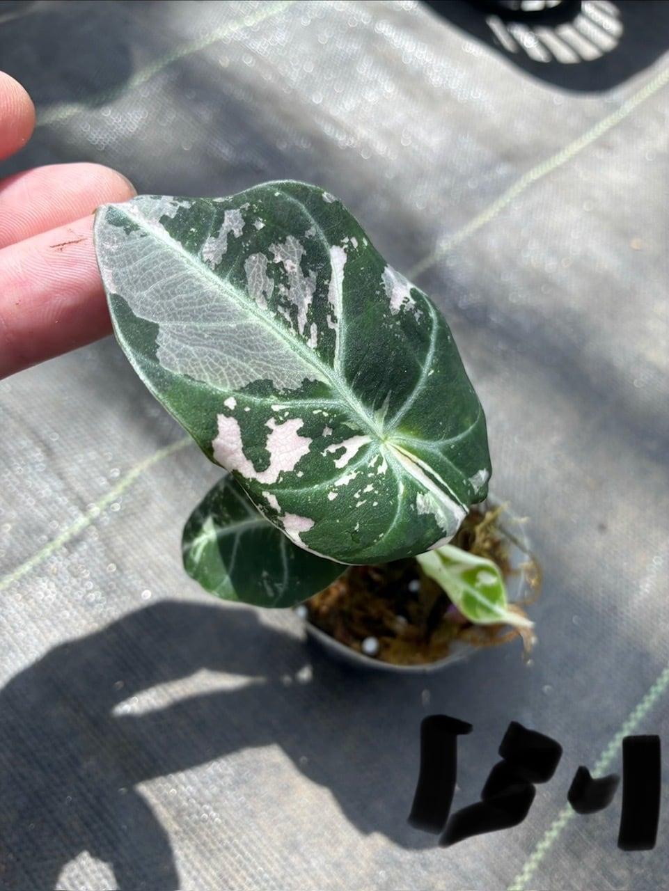 アロカシア・ブラックベルベットピンク斑入り2寸(13-1)